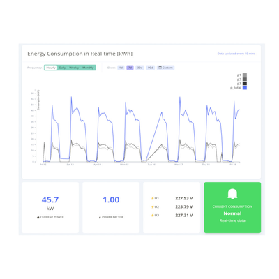 Energy efficiency, Water, Waste, Vibration, CO/CO2 Level, Temperature, and more – Monitor power consumption of machinery and production units, improve efficiency, report on anomalies.