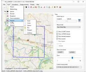 All the geometrical entities (domains, sources and receptors) are automatically exported in KML format for Google Earth. Concentration contours can also be exported in KML format.