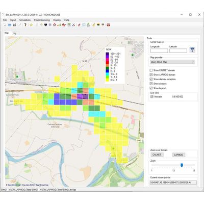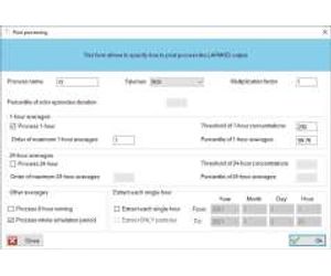 LAPMOD results are stored in one or more binary files and must be postprocessed with LAPOST to extract useful information. EW_LAPMOD allows to insert and verify the input of LAPOST and to launch it. Typical postprocessing operations may be the calculation of the annual averages, the 8-hour running averages, the maximum 1-hour or 24-hour averages and their percentiles. It is also possible to extract all the concentrations fields or the positions of the computational particles within a specific time interval. Concentration fields can be represented as grid maps within the GUI, or exported in KML format for Google Earth. Particles are saved in CSV files that can be dragged into Google Earth.
