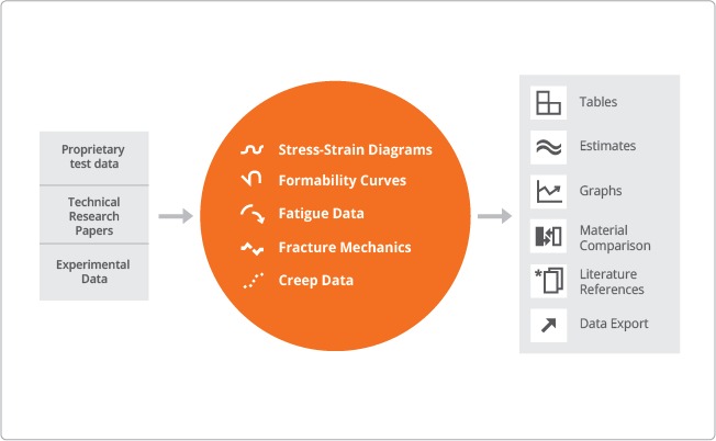 Total Materia’s Extended Range dataset provides an unparalleled material properties resource for advanced structural and thermal calculations and analysis including: stress-strain curves, formability diagrams, fatigue data and more.