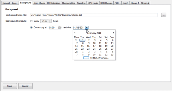 The operation of the system can easily be configured with background times, span check intervals, sample stream selection, reported results, data inputs and outputs etc. The configuration is via an easy to follow tabbed window, with no programming required.