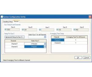 In the graphical window (Fig. 3) statistical data can be shown next to the measurement results for each channel. Within a certain time span: min, max, mean and standard deviation for the gasses measured in the selected task are shown.