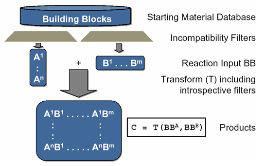 One of the key advantages of ChIP is that it leverages organizationally accessible synthetic methods to drive the enumeration process. By mixing and matching reaction methods, novel compositions of matter are generated with their potential synthetic road-maps.