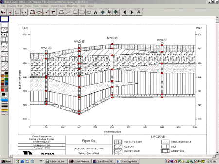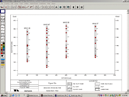 What really makes QuickCross/Fence outshine its competition are its drawing tools which enable you to manipulate the drawing right on the preview screen. Geological layers are often tricky and require a human touch to accurately recreate them. With QuickCross/Fence, you can quickly add layers, lenses, lines, text, and symbols. You can start by having the program connect the layers automatically, and then you can `clean them up,` if needed.