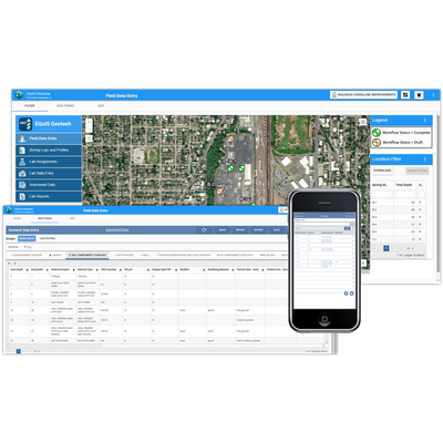 EQuIS Geotech extends the EQuIS software suite and manages geotechnical and environmental data in a single enterprise solution. EQuIS Geotech integrates mobile field data collection with EQuIS Collect, efficient manual data entry (Web Forms), and laboratory and instrumentation Electronic Data Deliverables (EDDs). Furthermore, EQuIS Geotech stores raw lab data, integrates with GIS/CAD applications to generate a wide array of configurable reports, and can connect to internal Enterprise Resource Planning (ERP) systems through a REST API. Numerous native EQuIS data operations are directly integrated, including migration capabilities and visualization tools. EQuIS Geotech improves data quality and streamlines project workflows for large-scale geotechnical data management.