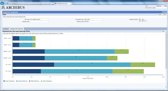 - Streamlines the computation and comparison of greenhouse gas emissions for all buildings in a portfolio and tracks changes over time