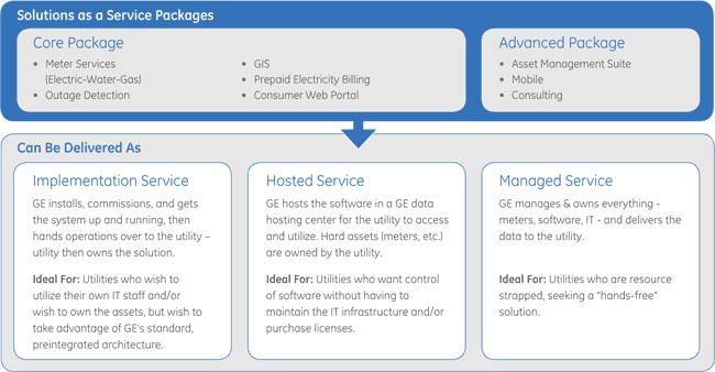 With any Smart Grid implementation, utilities face extremely large up-front and on-going expenses as well as the daunting task of planning, executing, and managing the entire project – all of which may expose the utility to an undue amount of integration risk and financial stress.Grid IQ Solutions as a Service delivers subscription based hosted Smart Grid service "packages" designed to leverage GE"s breadth, experience, and Smart Grid technology to shift integration, financial, and deployment risks away from the utility and provide a cost-effective Smart Grid solution.The offering utilizes GE-owned Smart Grid software and hardware technologies and strategic partnerships to provide meters and metering services, AMI, meter data management, pre-payment Outage Management System (OMS), Interactive Voice Response (IVR) and Geospatial Information System (GIS) as pre-integrated standard packages for faster deployment at a low up front cost and with low utility risk.