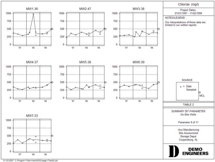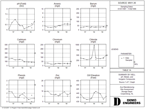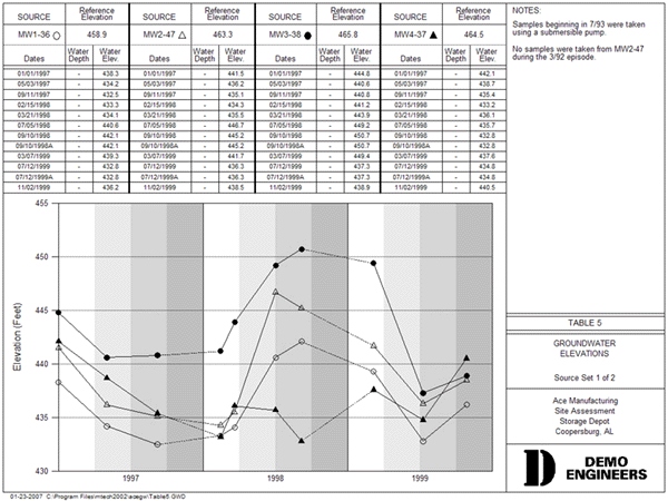 Groundwater Assist extracts pertinent groundwater data from raw lab data files and adds it to historical data in Excel tables or other types of databases. Thus, each time you sample, you avoid tedious data entry. ChemGraph is an Access database and report writer. It enables you to quickly produce groundwater tables, graphs, and maps. The goal of Groundwater Assist is simple -- let users avoid the tedious data entry of laboratory data. The process works as follows: get the electronic data file from the lab, click one button, the data is added to your existing Excel or ChemGraph tables. If you are using Excel, your tables are ready to print. If you are using ChemGraph, you are ready to print specialized environmental reports:
