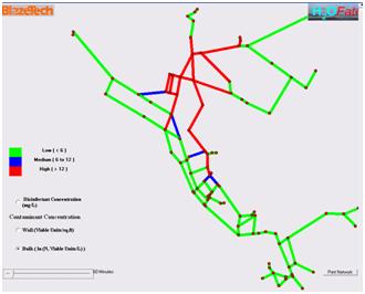 - Guidance in the placement of sensors for effective monitoring and pre-positioning of treatment equipment (e.g., chlorine booster stations) for decontamination.