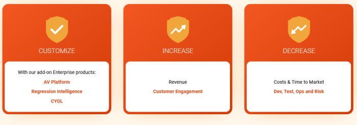 Delivers actionable regression and aggregation insights throughout the digital experience lifecycle, from planning and development to troubleticketing and operations.