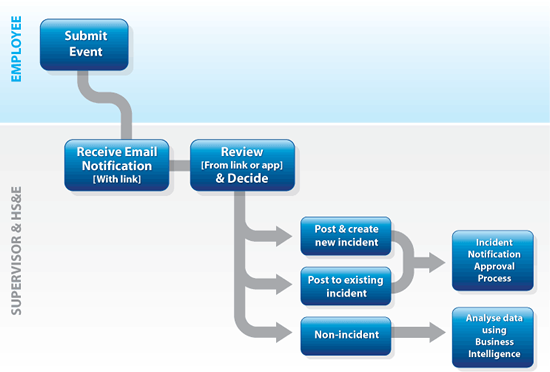- Event reporting (an employee or supervisor reports an event)