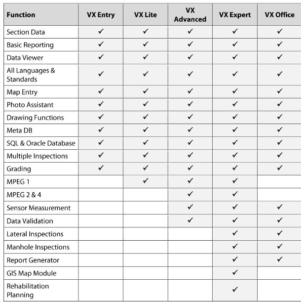 The software WinCan VX has been developed for the description of in-pipe observations as well as for the inspection of manholes and boreholes and is available in five variants. The basic module WinCanVX Entry provides all the core functionalities of a sewer inspection software. If required, the customer can buy additional functions that are part of the advanced modules WinCanVX Lite, Advanced, Expert and Office.