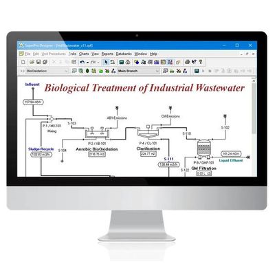 EnviroPro Designer is a subset of SuperPro Designer that facilitates modeling, design and optimization of water purification, wastewater treatment and air pollution control processes. EnviroPro Designer is a valuable tool for environmental consulting engineers, process designers, and treatment/disposal plant engineers and managers. It provides under a single umbrella modeling of end-of-pipe treatment processes, project economic evaluation, and environmental impact assessment. It supports modeling of continuous as well as batch processes and combinations of batch and continuous. Its rigorous and versatile biological reactor models can be used to analyze and optimize biochemical oxidation as well as nitrogen and phosphorous removal processes. Its VOC emission models (accepted by EPA) can be used to calculate emissions from treatment plants and track the fate of hazardous chemicals.