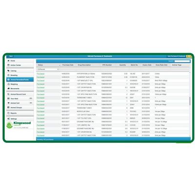 Let Kingswood`s VetLink facility take the pain out of Animal Remedies recording. Direct link with your vet: Veterinary practice emails file containing medicine purchases and prescription details to the Kingswood server. Bord Bia reports automatically generated: Kingswood Mobile processes purchases and prescriptions. to generate the key Bord Bia reports. Save Money: No need to pay outside agencies to keep your Animal. Remedies records. Integrated Herd Records: Kingswood Mobile integrates your animal treatments with your other herd data such as breeding & fertility records.