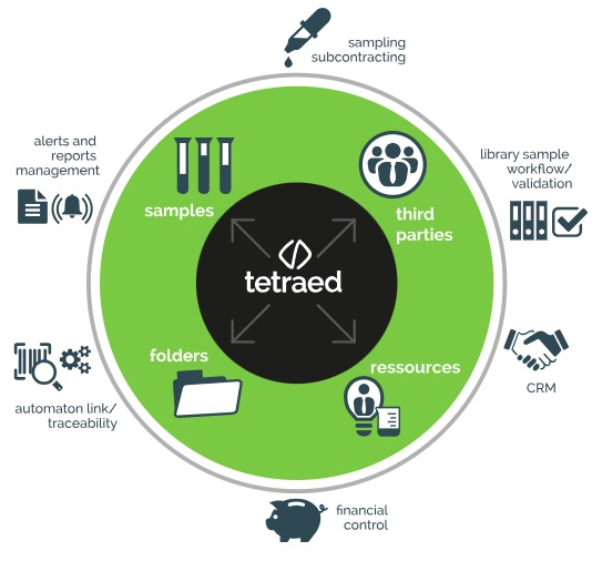 Designed for provider laboratories and industries of agribusiness, cosmetic and environment, TETRAED ensures the complete management of technical and administrative activities. Taking advantage of an extensive expertise in microbiology and having a user-friendly interface, TETRAED is an easy, communicating and evolutionary software.