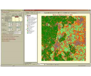 The Change Analysis panel provides a set of tools for understanding the nature and extent of landcover change, including graphs of gains and losses, net changes and contributions experienced by any category. A simple one-click interface provides the ability to generate rapid maps of change, persistence, specific transitions and exchanges between categories.