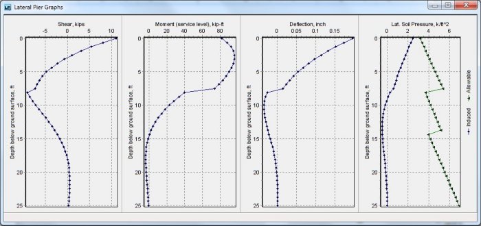 (3) Analysis of induced & allowable lateral soil pressures (not soil reaction) so that you can instantly check that you are not exceeding the allowable passive soil pressures.