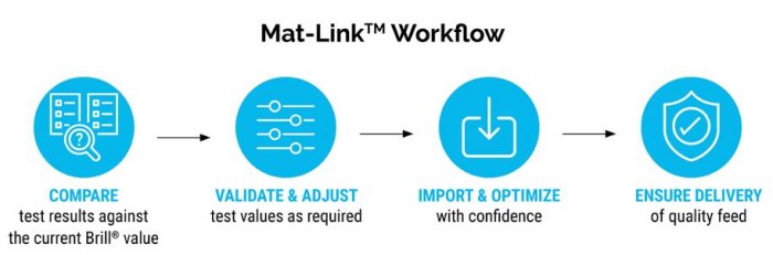 Built to improve and maintain data integrity, Mat-Link™ provides formulation teams the tools they need to ensure feed quality. Designed for formulators, by formulators, Mat-Link™ enables review of the latest test results before it enters formulation. Review new lab data, validate, and adjust as required, without overriding production data. Then simply import into Brill Formulation.