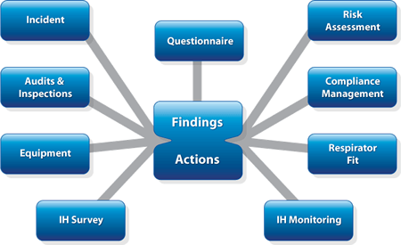 - Track ergonomic, safety, IH, and environmental findings & actions together in one location (you will only be able to see the findings & actions for the modules to which you have been granted security access)