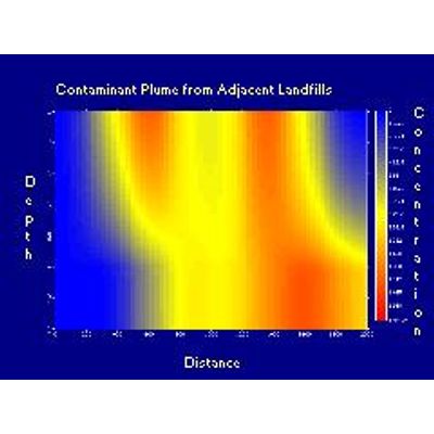 One or more landfills, buried waste, spills, or disposal ponds can be modeled. These contaminant sources may be adjacent or offset from each other. Model properties may be either constant or transient, with the concentrations calculated at specified times, depths, and distances.