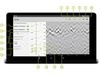 - Wave/Trace view shows the currently received single trace data for reference. Here you can also find the controls for gain filtering - hardware gain and zoned software gain.