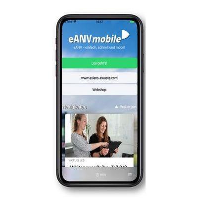 Are you a producer, transporter, disposer or a third party acting on behalt of a producer and want to have your consignment notes/transfer notes with you at all times on your smartphone or tablet? Then the eANVmobile app is for you! Thanks to the app`s offline capability, you always have your consignment notes/transfer notes with you, and you are always informed about updates in the eANVportal via self-configurable push notifications so that you can process them immediately. Remote signing of consignment notes/transfer notes without a signature card and card reader is also possible via the app!