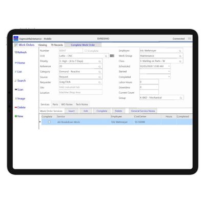 Enter and edit work orders on the fly. Easily complete and manage work orders. Monitor the health of all your critical assets and machinery. Submit and follow up on maintenance requests. Increase wrench time and overall efficiency (OEE). Increase data entry and regulatory compliance.