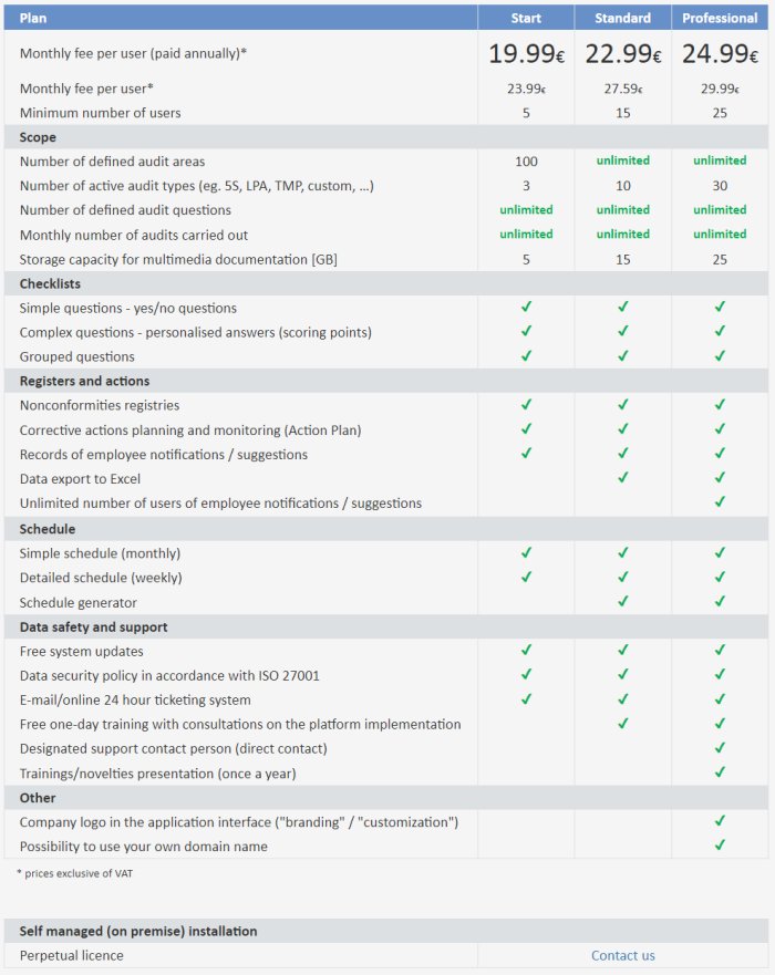 All you need to use the system is a web browser, and the compatibility of the audit functions with mobile devices allows you to conduct an audit on any smartphone.