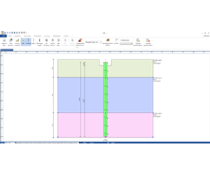 Geometric characteristics of the paling and the elements connected thereto (loads, location of trial sounding/boring and seismic stress) together with the geotechnic parameters of the terrain may be entered and altered within the worksheet activating the available functions either in the drop down menus, relocatable toolbars or through hot keys.