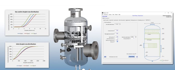 MySep Studio offers Design and Performance Simulation for process phase separators. It applies MySep’s proprietary modelling and correlations to give detailed incremental analysis of gas-liquid and liquid-liquid separation. You can rapidly size a new separator and analyse its performance characteristics selecting from a range of internals. Deliverables include a comprehensive report, user-customisable data sheets and to-scale equipment layout sketch.