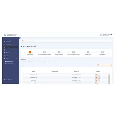 Custom calibration model development on the NeoSpectra platform is intuitive and straightforward. Data management functions on the NeoSpectra Cloud work together with a powerful desktop chemometric software package to create and deploy calibration models with 4 simple steps: 1. Collect spectral data with Collect app.The spectra are automatically transferred to the NeoSpectra Cloud Portal, 2. Manage sample data, add reference values and export calibration sets from the Cloud Portal. 3. Create and validate the model with the included chemometric calibration software. 4. Upload the model and deploy to your organization or publish in the NeoSpectra LabStore.