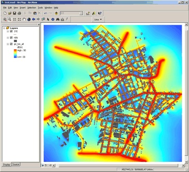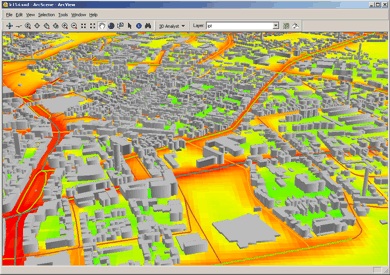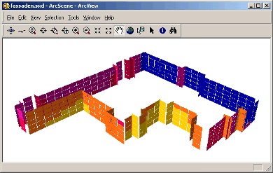 For detailed analyses, charges of façade elements can be determined by LimA. These can be used directly in the GIS and thus by the powerful 3-D tool of ArcGIS. Also combinations of views of cities and integrated displays of façades are possible.