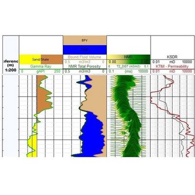 Borehole NMR is specifically tuned to sense the fluid-filled pores only, so measurement accuracy is completely unaffected by matrix composition, with no special calibrations to formation lithology required. This response capability contrasts completely with the lithology-dependent measurement principle of conventional logging tools.