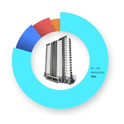 Choose whether to manually input building materials and other data points, or import your design from Excel, Revit, IFC, IESVE, energy models (gbXML), and other tools. You can also input building areas, energy consumption, water consumption, construction site operations, emissions and removals to get a complete picture of your building’s life-cycle impacts.