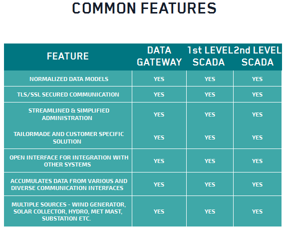 SCADA solution as a 1st level SCADA system (site server) enables on site monitoring, analyzing, reporting and control by accessing the local OEM SCADA system or interfacing directly to the turbine controller. Find out more here.