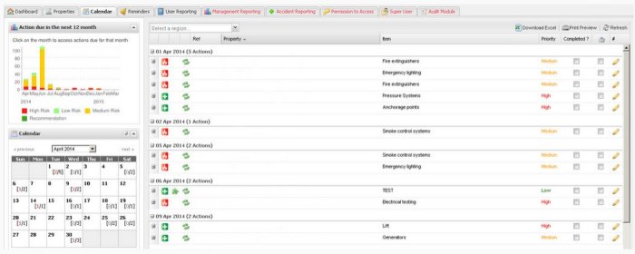 This feature provides senior management with a strategic overview of portfolio risk with graphical displays of outstanding actions, completed actions and highest risk properties.