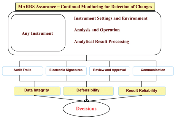 MARRS Assurance is patented security software for achieving compliance with electronic regulatory standards, such as 21 CFR Part 11, Good Manufacturing Practices (GMP), Good Automated Laboratory Practices (GALP), and more. MARRS Assurance automatically integrates with any instrument and throughout the entire lab, providing the capability for laboratories to personalize the software in order to meet their lab’s dynamic security needs. A critical element of MARRS Assurance is it’s unique ability to extend the compliance to the actual use of the data, providing a truly secure layer of defensibility of quality assurance that ensures that results used in decisions and studies have the utmost supportive quality. Furthermore, MARRS Assurance can seamlessly integrate within the entire laboratory Quality Assurance Program (QAP) and other compliance systems, and is applicable to various analytical industries.