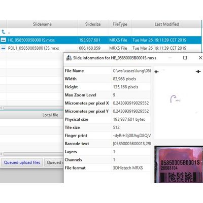 Because of their size, slide transfer operations can easily go wrong. To prevent this, PMA.transfer runs an integrity check on a slide before its transferred at the original location, as well as after its transferred at the destination. At all times during a transfer, the end-user can monitor the transactions for progress and speed.