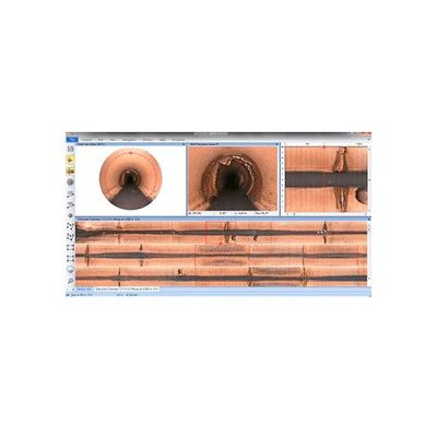 For faster review of inspected pipe, ScanExplorer displays the pipe wall as a flat strip whose width and height correlate to pipe length and circumference. Four synchronized views (section, side, front, schematic) make it easy to navigate, measure and annotate scans, and also see corresponding inclination data. ScanExplorer opens DigiSewer, RPP and Panoramo scans.