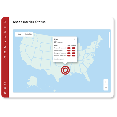 Leverage real-time updates and vulnerability alerts along with warnings on degradation and health of critical barriers and controls. Monitor asset and operation condition by level, i.e., countries, business type, and critical elements.