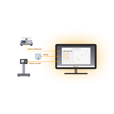 WinWedge Pro software logs data from RS232, USB, or Ethernet serial output scales and devices directly into Excel or any Windows application. It can also transmit commands, simulate keystrokes, and more.