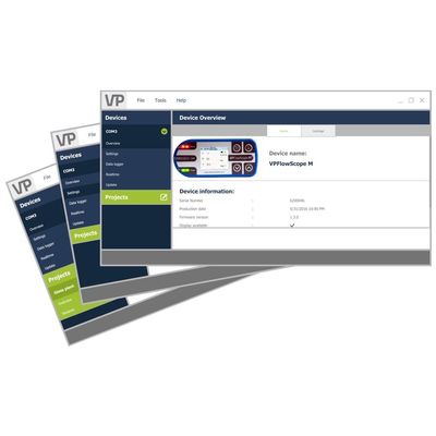 With VPStudio software you can configure your VPFlowScope, download data log sessions and export them to CSV. With VPStudio software you can configure your flow meters and retrieve data log sessions. The automatic detection of USB devices saves time with setting up a connection to your PC.