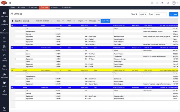 Accurately manage asset availability and immediately schedule jobs using a time-saving visual calendar. Then, when you are ready, notify everyone of the schedule with a few clicks.