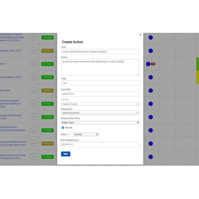 Create one-off or repeating actions based on your compliance obligations. All actions and their completions create an audit trail for management and external parties.