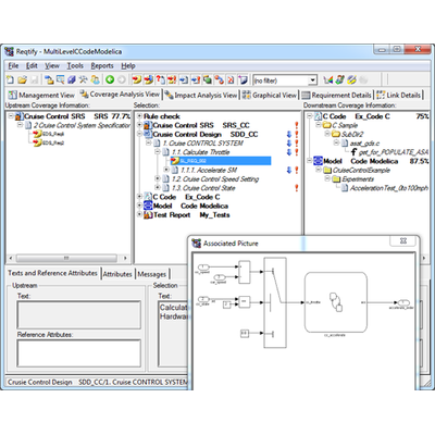 Reqtify is an easy to use, interactive application for managing requirements. It enables traceability and impact analysis across the entire hardware and software development lifecycle of a project. Reqtify is the most effective solution available linking requirements to the development, verification and validation process whatever the requirement source. It helps keep project teams focused on their implementation and verification work, for maximum efficiency in developing complex embedded systems.