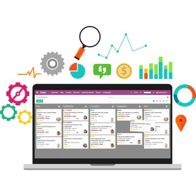 Odoo CRM (Customer Relationship Management) system is a powerful browser-based sales software designed to increase organisational efficiency. Odoo CRM is a small part of a larger highly integrated collective of ERP applications at your disposal. The benefit of utilising Odoo CRM is not only the ease of use and ability to highly customise it, it’s that the sales, marketing, management and accounting departments, can all collaboratively use it as it`s integrated with everything you need. Most CRM`s rely on integration with third-party apps to perform business as usual. When this is the case, marketing and sales rely on several separate applications with many logins to ensure that they can do their jobs. Odoo, contains all of the applications that your sales, marketing, accounts department and management teams need in the one place.