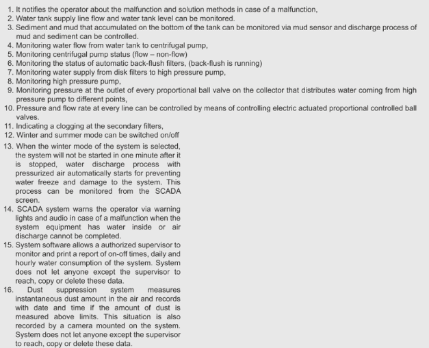 SCAOA screen on the automation system makes it possible to control and monitor system parameters. The system (unctions are listed below: