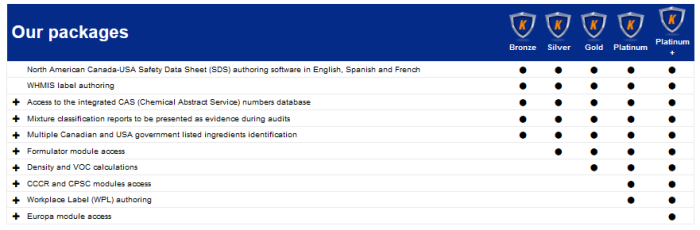 We have developed several packages of our Kalium software to help you comply with WHMIS, CCCR, TDG and other Canadian, US and European regulations.