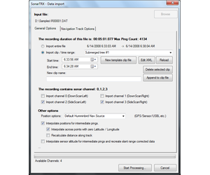 The various SonarTRX file importers (for each type of sonar file) have several common features: