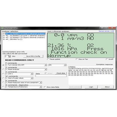 The Siemens panel program is a command interface and remote display for the following Siemens ELAN interface analysers: ULTRAMAT 6, OXYMAT 6, FIDAMAT 6, ULTRAMAT 23. By using the Siemens panel program, the operator can change and observe the parameters as if at the analyser keypad. Such data includes: diagnostics, current output, calibration times etc, and commands such as calibrations and pump operations are included.
